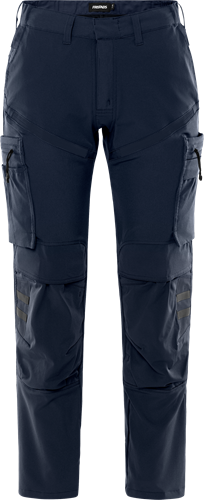 Lichtgewicht dameswerkbroek gemaakt van 4-way stretchmateriaal, grotendeels gemaakt van gerecycled polyester. Comfortabele broek met ripstop verstevigingen, ontworpen met details voor zowel bouw- als serviceprofessionals. Concept: Skarup