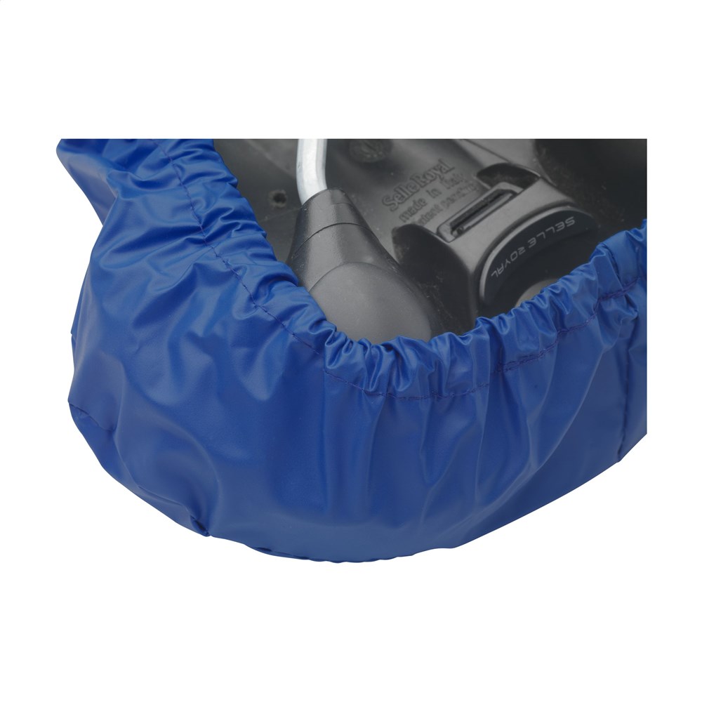 Zadelhoes gemaakt met gerecycled PVC (60% gerecycled PVC en 40% nieuw PVC). Elk zadelhoesje heeft een kartonnen plaat aan de binnenkant, zodat het niet kreukt. De elastische band aan de onderkant is bij dit model niet zichtbaar, deze is netjes weggewerkt. Het hoesje beschermt het zadel tegen vuil en vocht (niet 100% waterdicht).