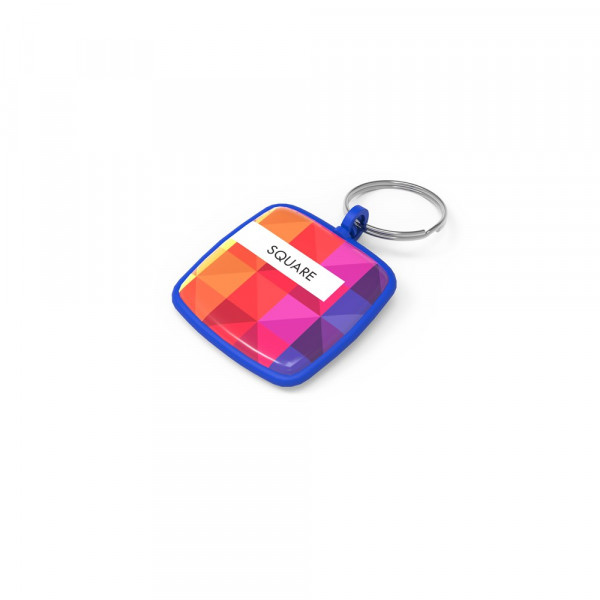De Key Ring Square heeft een standaardvorm en afgeronde hoeken. Deze sleutelhanger kan worden gepersonaliseerd met een full color bedrukking met een doming.