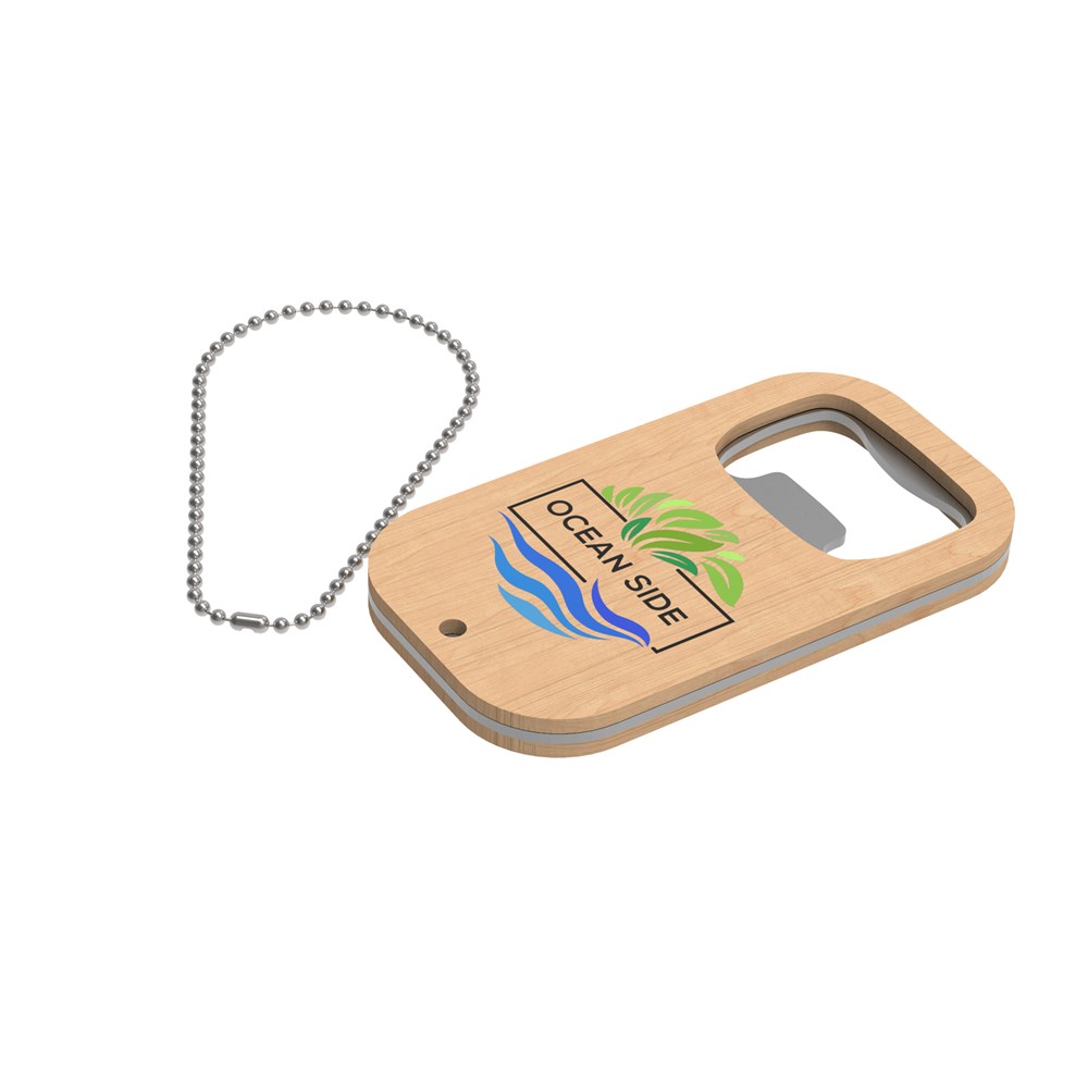 Open uw drankjes moeiteloos met de Key Ring Atlanta. Dit is een combinatie van hout uit verantwoord beheerde bossen en metaal wat resulteert in een handige opener. Deze opener is gemakkelijk mee te nemen. De opener wordt gepersonaliseerd met een full color bedrukking of een gravering.