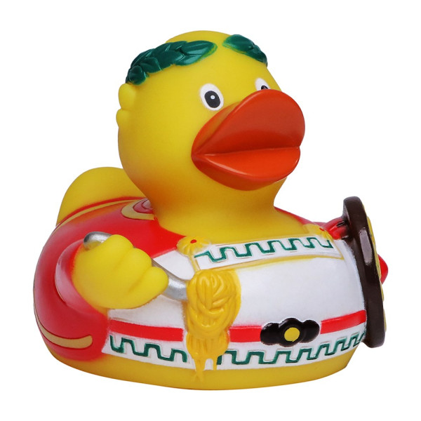 Omdat dwalen menselijk is, voelt onze CityDuck® zich in zijn prachtige gewaad verheven over alle twijfels. In plaats van een scepter draagt ze liever een vork sappige spaghetti bij zich, zodat de Dolce Vita niet wordt verwaarloosd als het om regeren gaat. Het is in ieder geval een decoratieve aanvulling op de feestelijke tuniek, die de ronde vormen van onze fladderende keizer flatteert. De traditionele laurierkrans verbergt het kale hoofd en is geschikt om indien nodig het keizerlijke leven wat pit te geven.