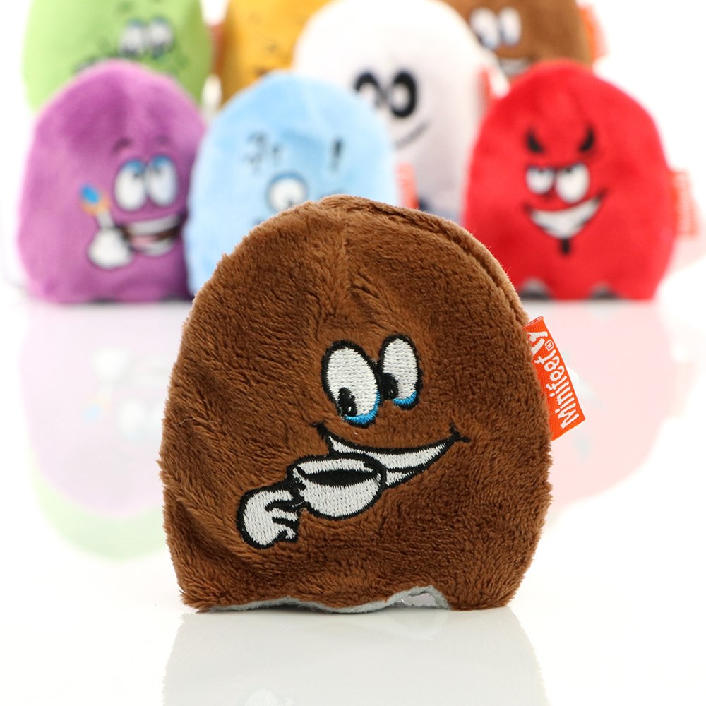 De teamspirit-serie, met de typische kantoorpersonages "cafeïnejunkie", "probleemoplosser", "creatief", "joker", "organisator", "daredevil" en "teamspirit", combineert de toegevoegde waarde van de antistress producten en de displayreinigers in één sympathiek promotieproduct. De ca. 8 cm grote, gedetailleerde pluche karakters zijn echte anti-stresshelden. Ze kunnen in stressvolle situaties verkreukeld, geperst en geperst worden zonder hun goede humeur te verliezen. Door de materiaaleigenschappen keren ze direct terug naar hun oorspronkelijke vorm. Bovendien hebben ze een hoogwaardige microvezelonderzijde, waardoor gladde oppervlakken gemakkelijk kunnen worden gereinigd. Door de combinatie van deze eigenschappen ontstaat een duurzaam promotieproduct dat meerdere keren per dag kan worden gebruikt en de reclameboodschap perfect overbrengt.