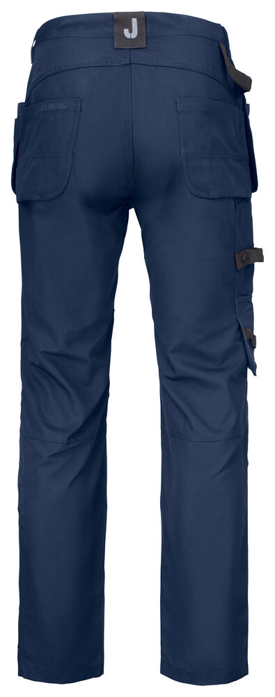 Functionele servicebroek met ruime holsterzakken, steekzakken aan de voorzijde, verstevigde achterzakken, een duimstokzak met mes-bevestigingsknoop en een zak op het been met rits, telefoonzak en ruimte voor een ID-kaart. De broek is professioneel afgewerkt met een hamerlus, extra riemlussen bij de grotere maten en rubber knopen om krassen te voorkomen. De voorgevormde knieën zorgen voor een optimaal draagcomfort. Verder zijn de zakken voor de kniestukken gemaakt van duurzaam polyamide met een reflecterende bies voor extra zichtbaarheid. Kniestukken kunnen op twee hoogtes geplaatst worden voor optimale bescherming.