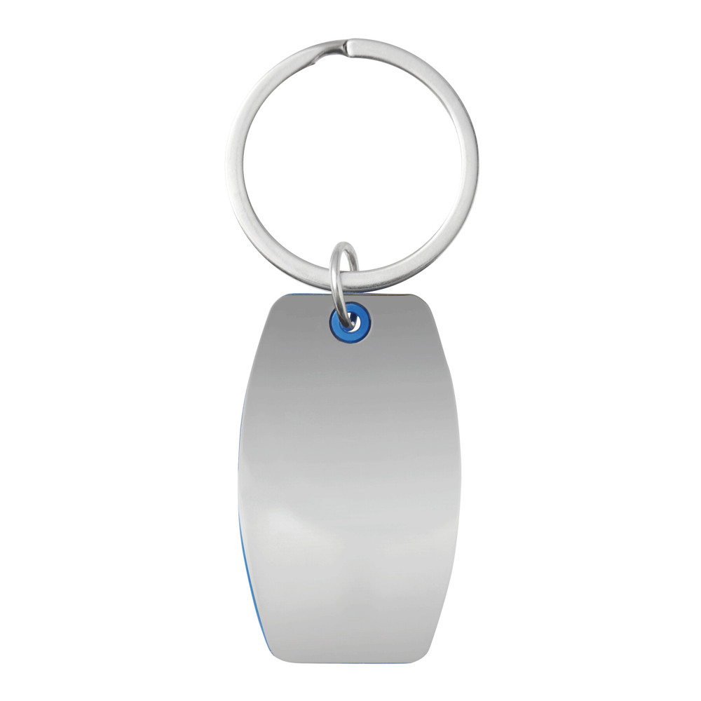 MIRROR sleutelhanger: gekleurd kunststof tussen hoogglans gepolijst staal.meer