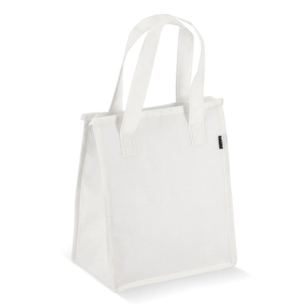 Lunchkoeltas gemaakt van gerecycled PET non-woven materiaal (75 g/m²) met aluminiumfolie voering. Compact en praktisch.