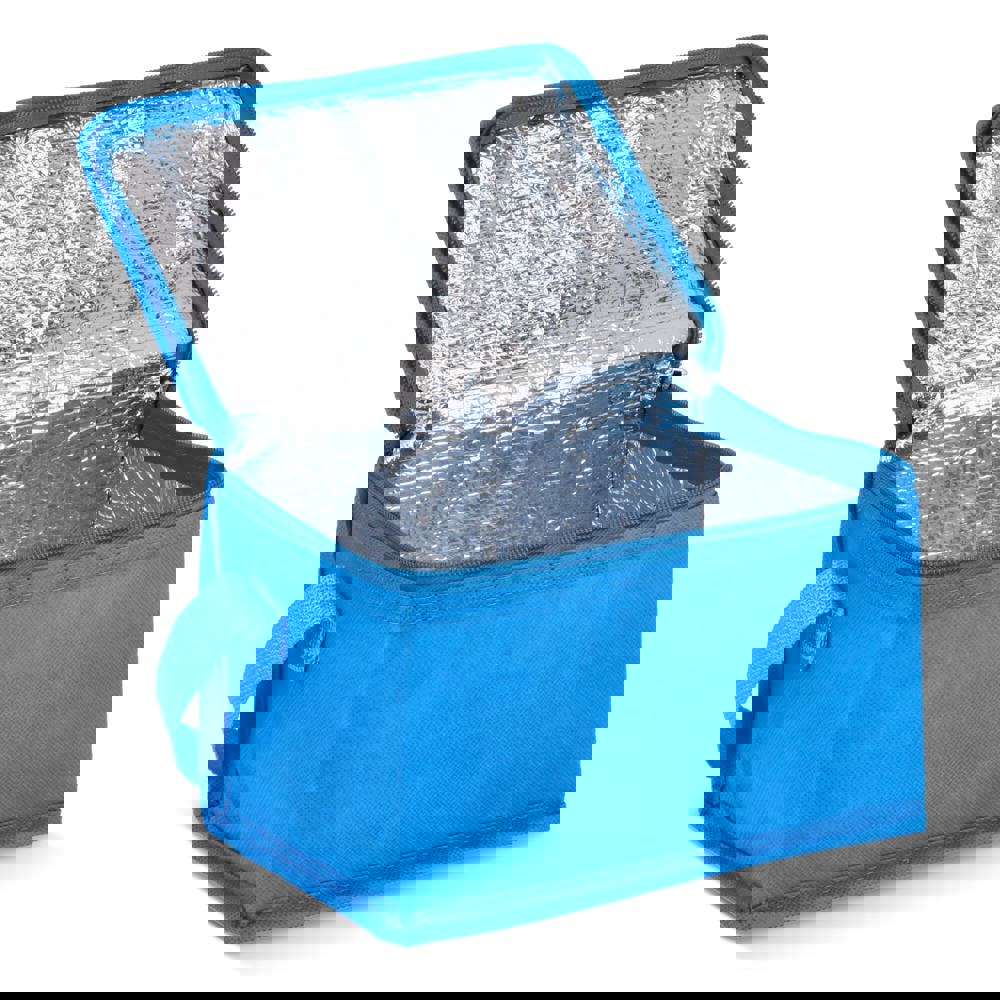 Koeltas geschikt voor 6 blikjes. Gemaakt van 75 g/m² gerecycled non-woven PET materiaal met aluminiumfolie voering. Lichtgewicht en praktisch om dranken koel te houden.
