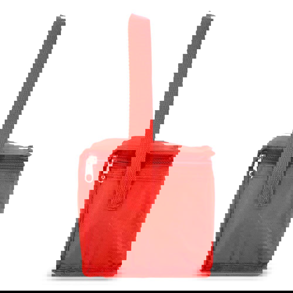 Koeltas geschikt voor 6 blikjes. Gemaakt van 75 g/m² gerecycled non-woven PET materiaal met aluminiumfolie voering. Lichtgewicht en praktisch om dranken koel te houden.