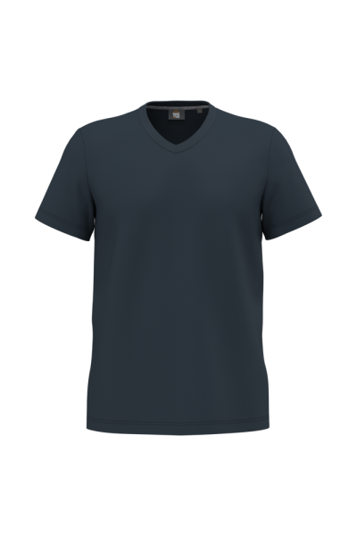 65% gerecycled polyester / 35% gekamd katoen. Jerseytricot, gebreid met VORTEX-garen om de vezel te verstevigen (tegen pluizen) voor de effen kleuren. Jerseytricot voor de kleur Oxford Grey. Enzymgewassen. Antibacteriële behandeling. Wasbaar op 60°C. Rechte snit. V-hals met 1x1 ribboord. Nektape in contrasterende jersey in de hals. Dubbel stiksel aan mouwuiteinden en onderkant. Afneembaar merklabel.