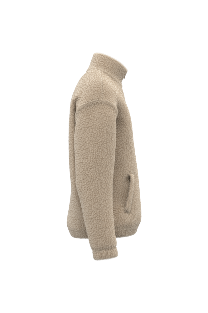 100% polyester. Regular fit met afhangende schouders. Sherpastof met voering van de body in jersey en voering van de mouwen in taffetas, voor makkelijk aantrekken. Opstaande kraag gevoerd met de hoofdstof, met een rits en een trekker in ton-sur-ton metaal. De hals is binnenin afgewerkt met ton-sur-ton nektape met kepermotief. Elastisch aan mouwuiteinden en onderkant. Twee omzoomde zakken aan de voorkant. Drukkersrits aan de binnenkant onderaan.