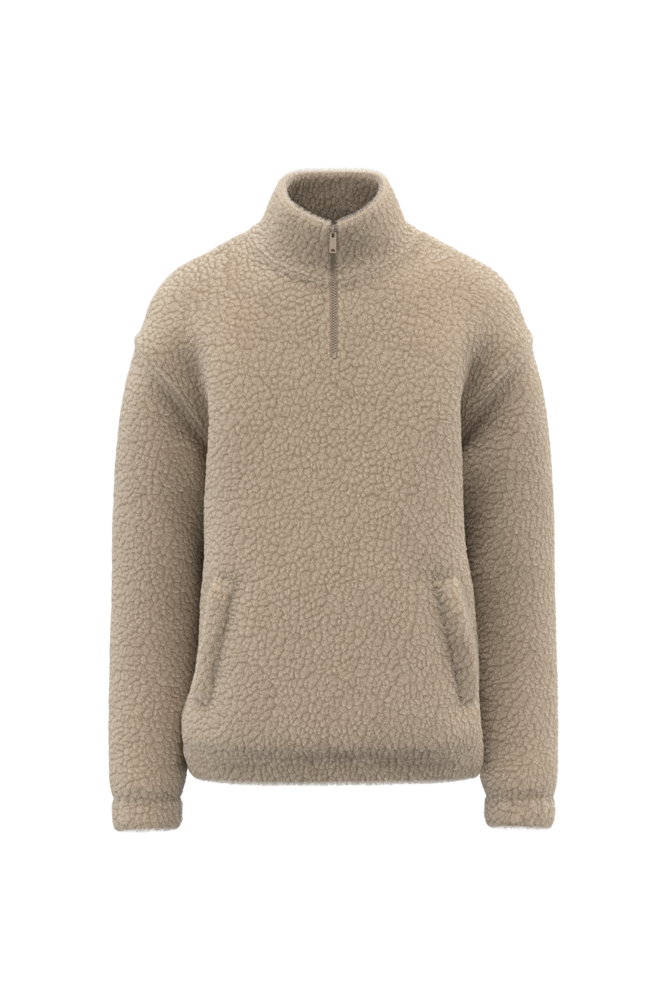 SP403 - Uniseks sweater van sherpa met kwartrits en afhangende schouders