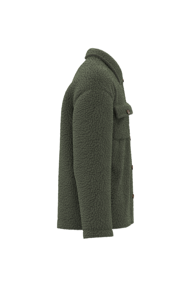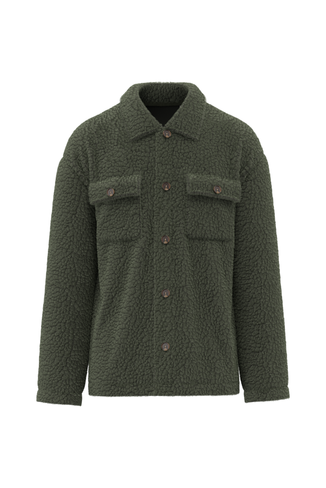100% polyester. Regular fit met afhangende schouders. Sherpastof met voering van de body in jersey en voering van de mouwen in taffetas, voor makkelijk aantrekken. Kraag gevoerd met de hoofdstof. Knooplijst en borstzakjes met klep die sluiten met plastic knopen met hoornlook. De hals is binnenin afgewerkt met ton-sur-ton nektape met kepermotief. De mouwuiteinden en de zoom zijn afgewerkt met enkel stiksel. Drukkersrits aan de binnenkant onderaan.