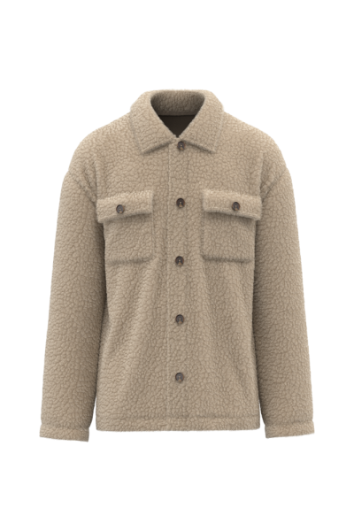 100% polyester. Regular fit met afhangende schouders. Sherpastof met voering van de body in jersey en voering van de mouwen in taffetas, voor makkelijk aantrekken. Kraag gevoerd met de hoofdstof. Knooplijst en borstzakjes met klep die sluiten met plastic knopen met hoornlook. De hals is binnenin afgewerkt met ton-sur-ton nektape met kepermotief. De mouwuiteinden en de zoom zijn afgewerkt met enkel stiksel. Drukkersrits aan de binnenkant onderaan.