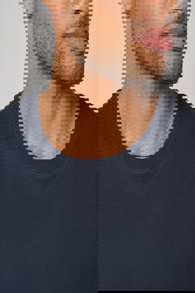 100% katoen. Oxford Grey: 90% katoen / 10% viscose. Gekamd katoen. Zacht jersey. Met antipluisbehandeling. Wassen op 40°C. Rechte snit. Ronde hals met 1x1 ribboord en ton-sur-ton nektape. Brede mouwopening met onafgewerkte boord. Dubbel stiksel aan de onderkant. Geen merklabel in de kraag, maar enkel een maatlabel voor eenvoudige personalisatie.