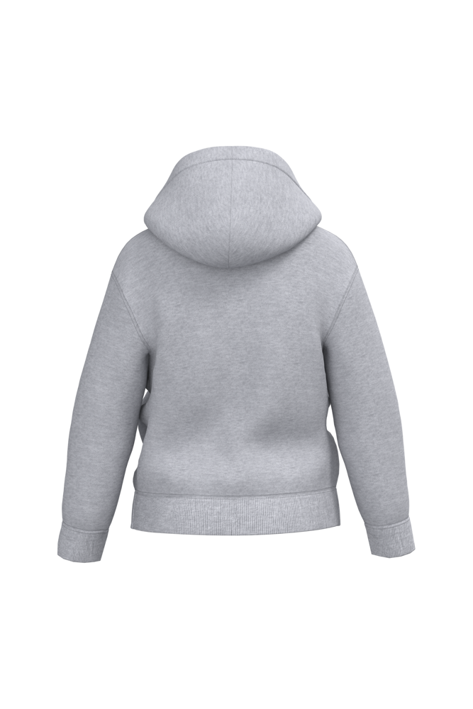 50% ringgesponnen katoen / 50% post-consumer gerecycled polyester. Geborsteld fleece aan de binnenkant. Straight snit. Cut-and-sew. Enzymgewassen. 2x1 ribboord in buisconstructie voor een betere afwerking aan hals, mouwuiteinden en onderkant. Dubbel stiksel aan schouders, mouwinzet, mouwuiteinden en onderaan. Kangoeroezakken. Ton-sur-ton ritssluiting in nylon. Capuchon gevoerd met jersey. Ton-sur-ton nektape van jersey in de hals. Geen merklabel, maar een maatlabel in de kraag voor eenvoudige personalisatie.