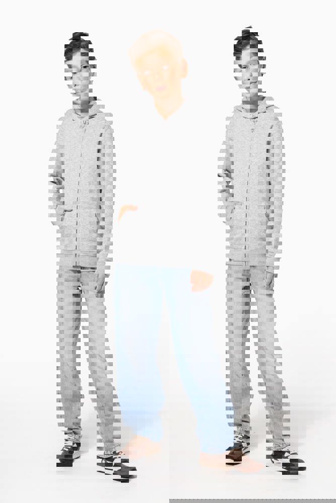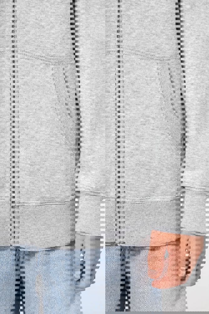 50% ringgesponnen katoen / 50% post-consumer gerecycled polyester. Geborsteld fleece aan de binnenkant. Straight snit. Cut-and-sew. Enzymgewassen. 2x1 ribboord in buisconstructie voor een betere afwerking aan hals, mouwuiteinden en onderkant. Dubbel stiksel aan schouders, mouwinzet, mouwuiteinden en onderaan. Kangoeroezakken. Ton-sur-ton ritssluiting in nylon. Capuchon gevoerd met jersey. Ton-sur-ton nektape van jersey in de hals. Geen merklabel, maar een maatlabel in de kraag voor eenvoudige personalisatie.