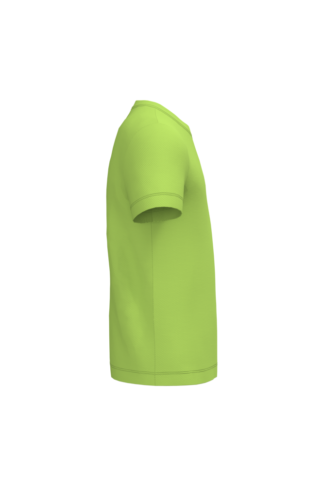 100% polyester. Mesh piqué breisel. Lichtgewicht, sneldrogende stof. Rechte snit. Ronde hals in mesh piqué breisel met dubbele stiksels. Toon-op-toon nektape aan de binnenzijde. Mouwboorden en zoom afgewerkt met dubbele stiksels. Afneembaar merklabel.