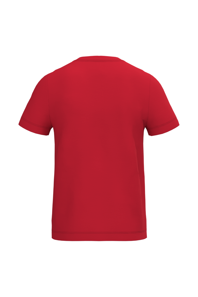 100% polyester. Mesh piqué breisel. Lichtgewicht, sneldrogende stof. Rechte snit. Ronde hals in mesh piqué breisel met dubbele stiksels. Toon-op-toon nektape aan de binnenzijde. Mouwboorden en zoom afgewerkt met dubbele stiksels. Afneembaar merklabel.