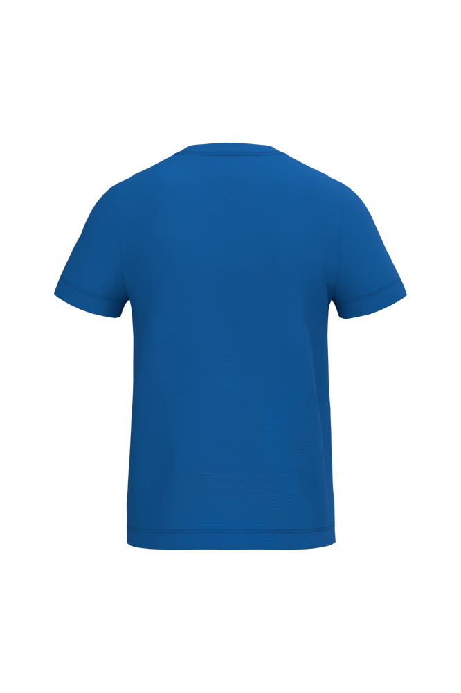 100% polyester. Mesh piqué breisel. Lichtgewicht, sneldrogende stof. Rechte snit. Ronde hals in mesh piqué breisel met dubbele stiksels. Toon-op-toon nektape aan de binnenzijde. Mouwboorden en zoom afgewerkt met dubbele stiksels. Afneembaar merklabel.