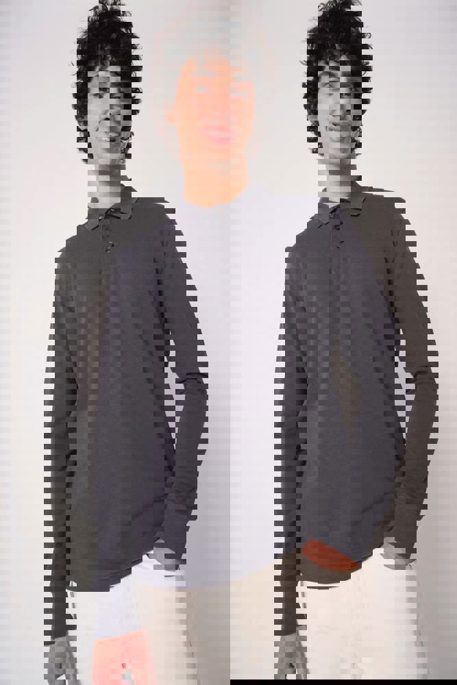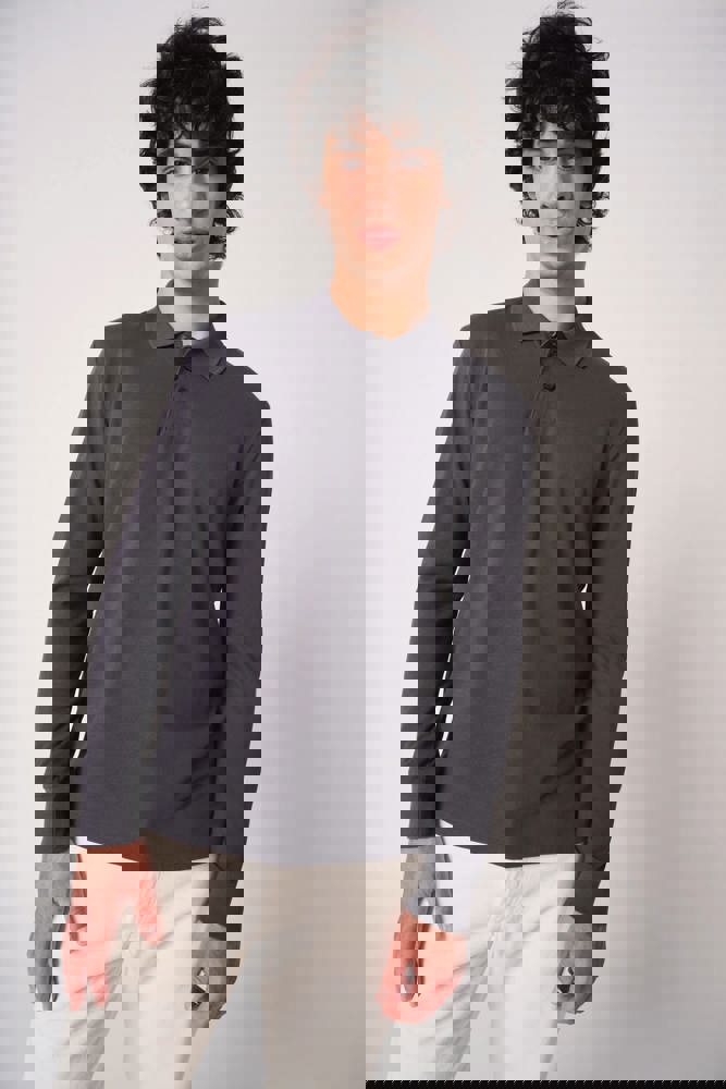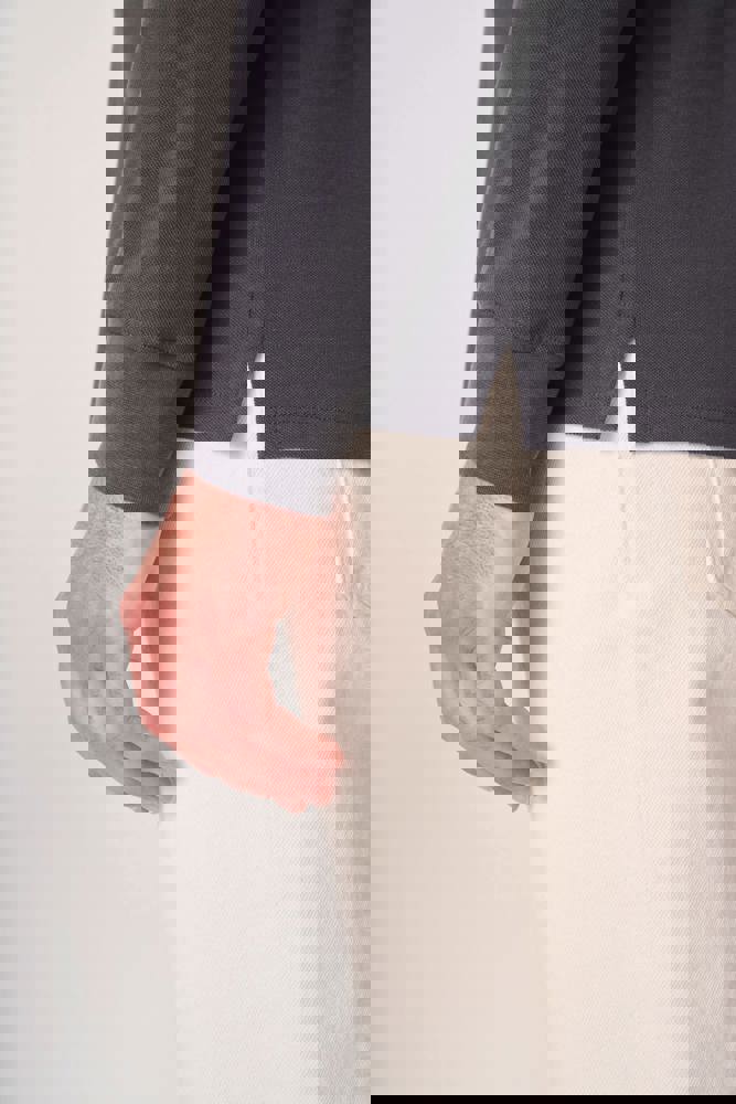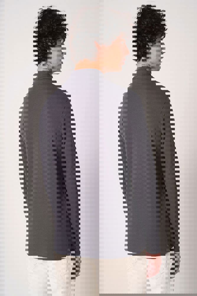 Effen kleuren: 100% katoen. Kleur Ideal Oxford Grey: 90% katoen / 10% viscose. Piqué breisel. Rechte snit. Kraag en mouwboorden in 1x1 ribboordafwerking. Sluiting met drie toon-op-toon knopen. Toon-op-toon nektape aan de binnenzijde. Zijsplitten. Zoom afgewerkt met dubbele stiksels. Afneembaar merklabel.