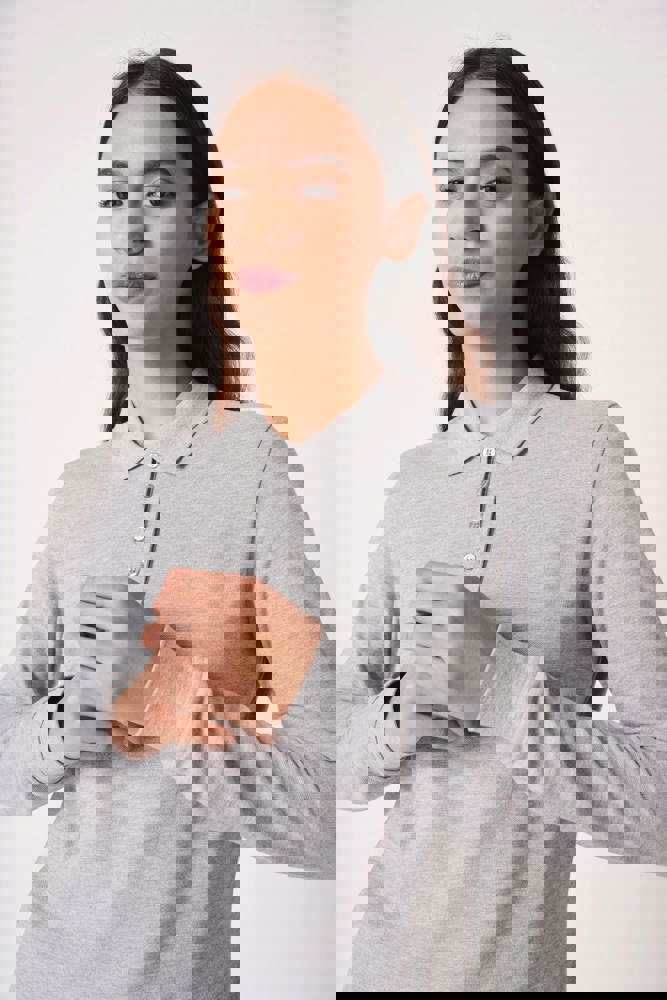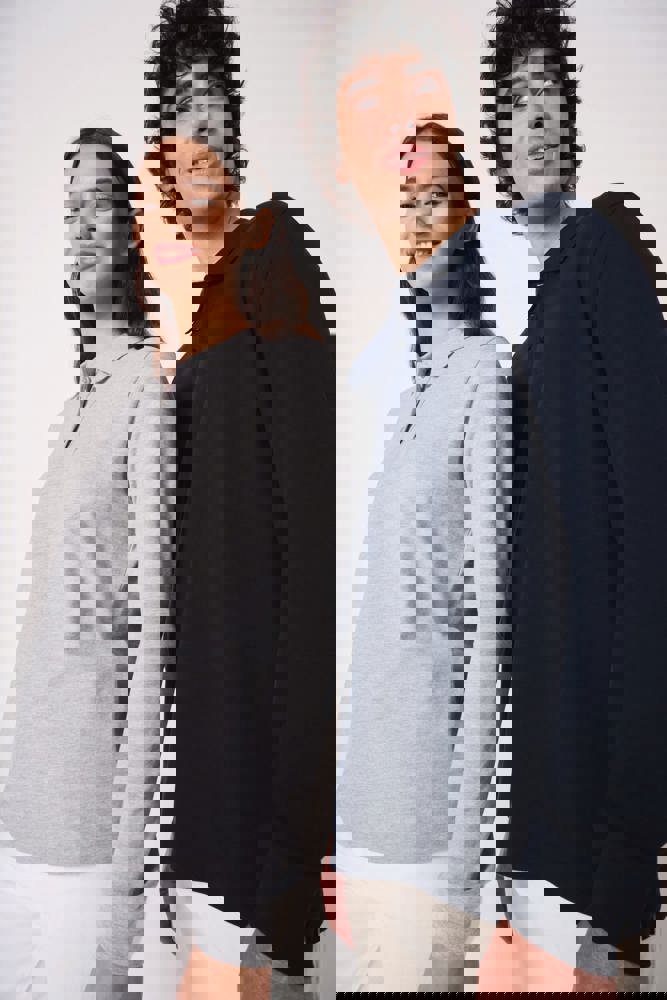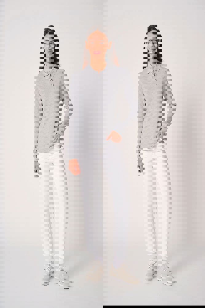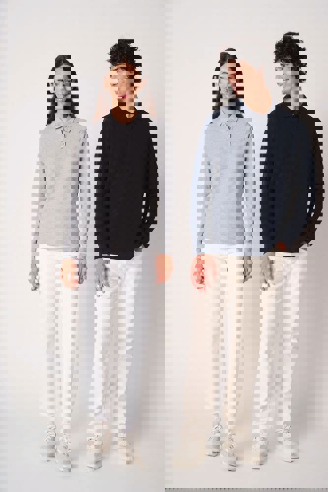 Effen kleuren: 100% katoen. Kleur Ideal Oxford Grey: 90% katoen / 10% viscose. Piqué breisel. Rechte snit. Kraag en mouwboorden in 1x1 ribboordafwerking. Sluiting met vier toon-op-toon knopen. Toon-op-toon nektape aan de binnenzijde. Zijsplitten. Zoom afgewerkt met dubbele stiksels. Afneembaar merklabel.