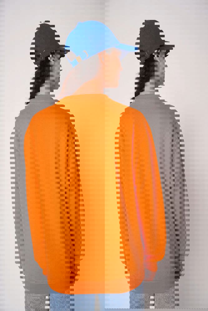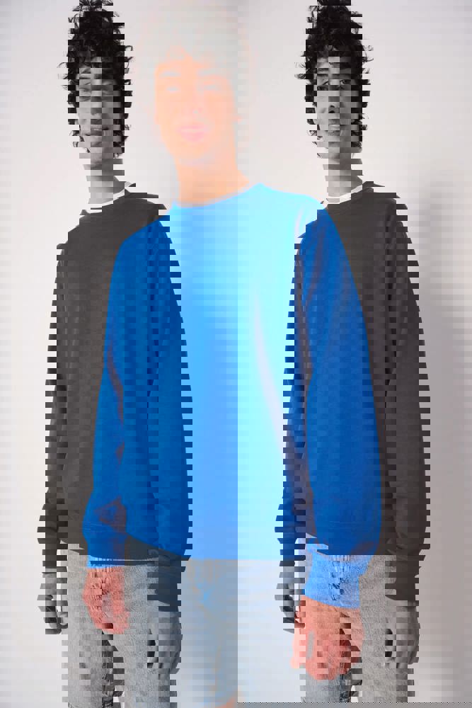 50% katoen / 50% polyester. Geruwd molton, tubulair geweven. Rechte snit. Hals, mouwboorden en zoom in 1x1 ribboord met dubbele stiksels. Afneembaar merklabel.