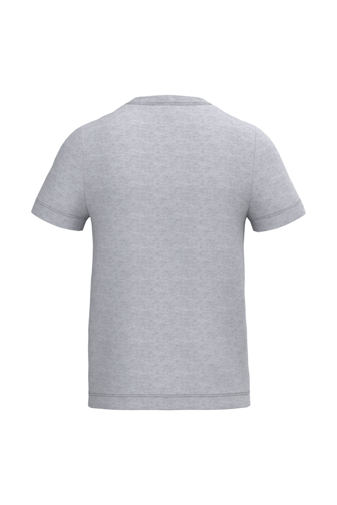 Effen kleuren: 100% katoen. Kleur Ideal Ash Heather: 99% katoen / 1% viscose. Kleur Ideal Oxford Grey: 90% katoen / 10% viscose. Rechte snit. Cut & sewn jersey van maat 1/2 t/m 6/8 en tubulair van maat 8/10 t/m 12/14. Ronde hals in 1x1 ribboordafwerking met dubbele stiksels. Nektape aan de binnenzijde in toon-op-toon kleur. Mouwboorden en zoom met dubbele stiksels afgewerkt. Afneembaar merklabel.