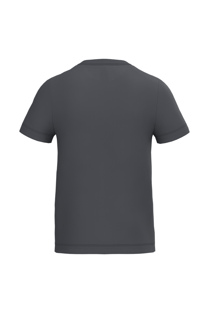 Effen kleuren: 100% katoen. Kleur Ideal Ash Heather: 99% katoen / 1% viscose. Kleur Ideal Oxford Grey: 90% katoen / 10% viscose. Rechte snit. Cut & sewn jersey van maat 1/2 t/m 6/8 en tubulair van maat 8/10 t/m 12/14. Ronde hals in 1x1 ribboordafwerking met dubbele stiksels. Nektape aan de binnenzijde in toon-op-toon kleur. Mouwboorden en zoom met dubbele stiksels afgewerkt. Afneembaar merklabel.
