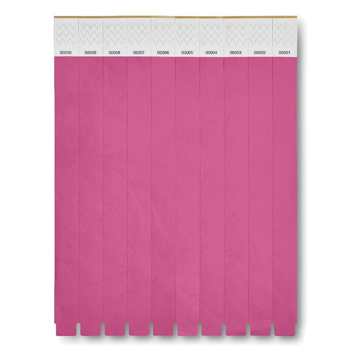 Één vel met 10 evenementen polsbandjes. DuPont ™ Tyvek® 19mm inclusief unieke nummering.