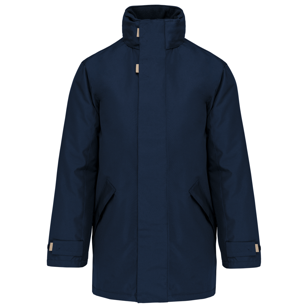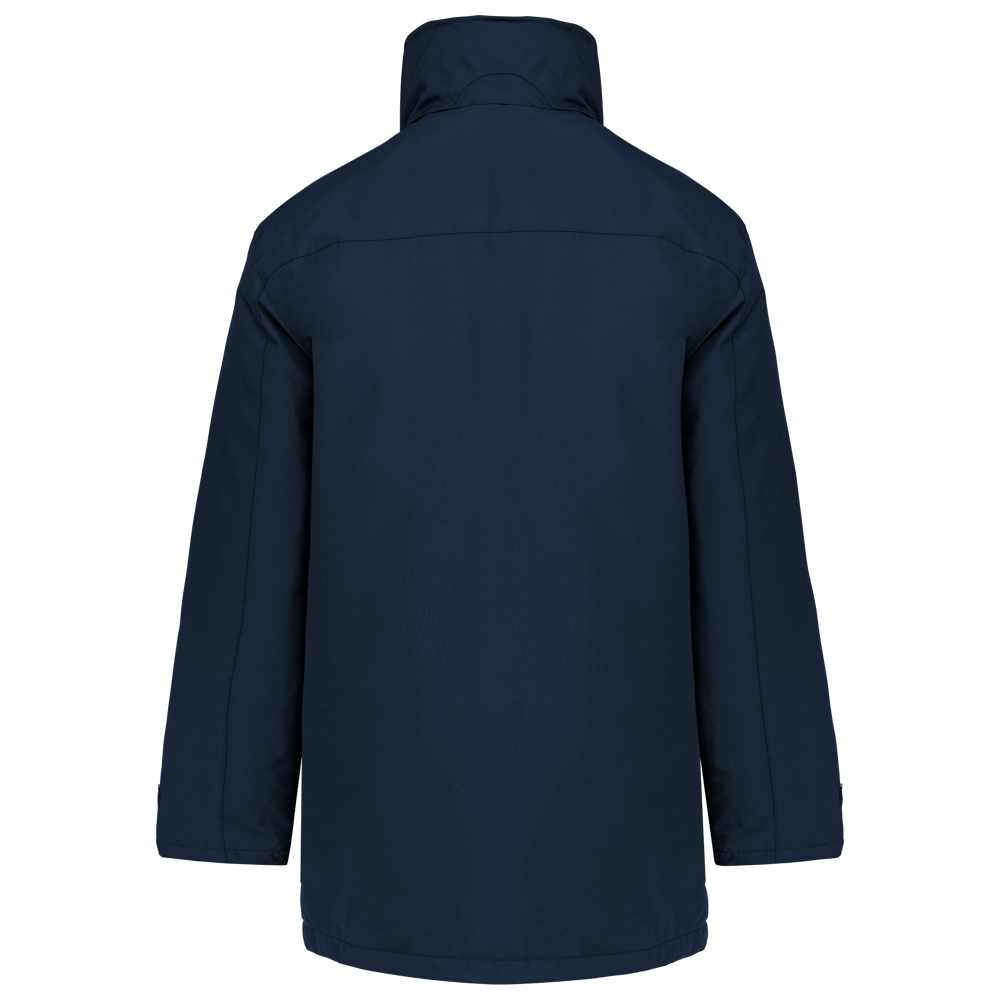 Buitenkant: 100% oxford polyester. Binnenkant: gewatteerd polyester. 2 voorzakken met rits. 2 binnenzakken waarvan 1 voor de GSM. Afneembare capuchon in de kraag. Kraag gevoerd met fleece. Drukkersrits. Waterdichte naden. Ritssluiting verborgen onder een lijst met drukknopen en klittenband. Verstelbare mouwuiteinden.