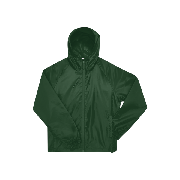 100% gerecycled polyester. Waterafstotend dankzij de DWR-coating (Durable Water Repellent). Raglanmouwen, verstelbare stormcapuchon en semi-elastische boorden. 2 voorzakken met rits.