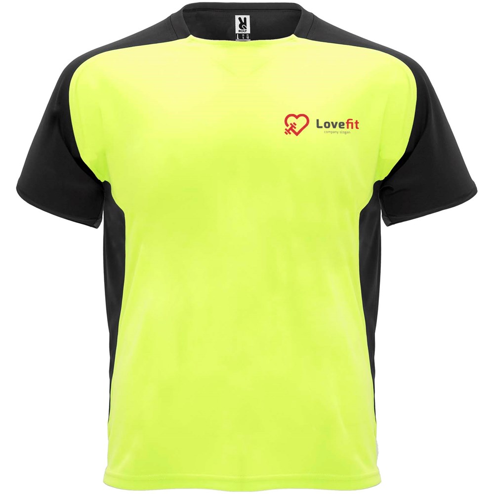 Technische en ademende stof. Ronde hals met bijpassende bedekte naden. Raglanmouwen en contrasterende zijpanelen. Verwijderbaar label.
