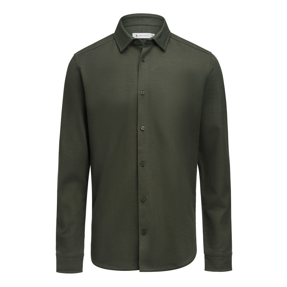 Hicksville is een modern hemd, gemaakt uit een wafelstructuur breisel. De stof bestaat uit organisch katoen en gerecyled polyester. De verborgen button down kraag en toon op toon knopen zorgen voor een strakke en eigentijdse look. Beschikbaar in Tailored Fit.