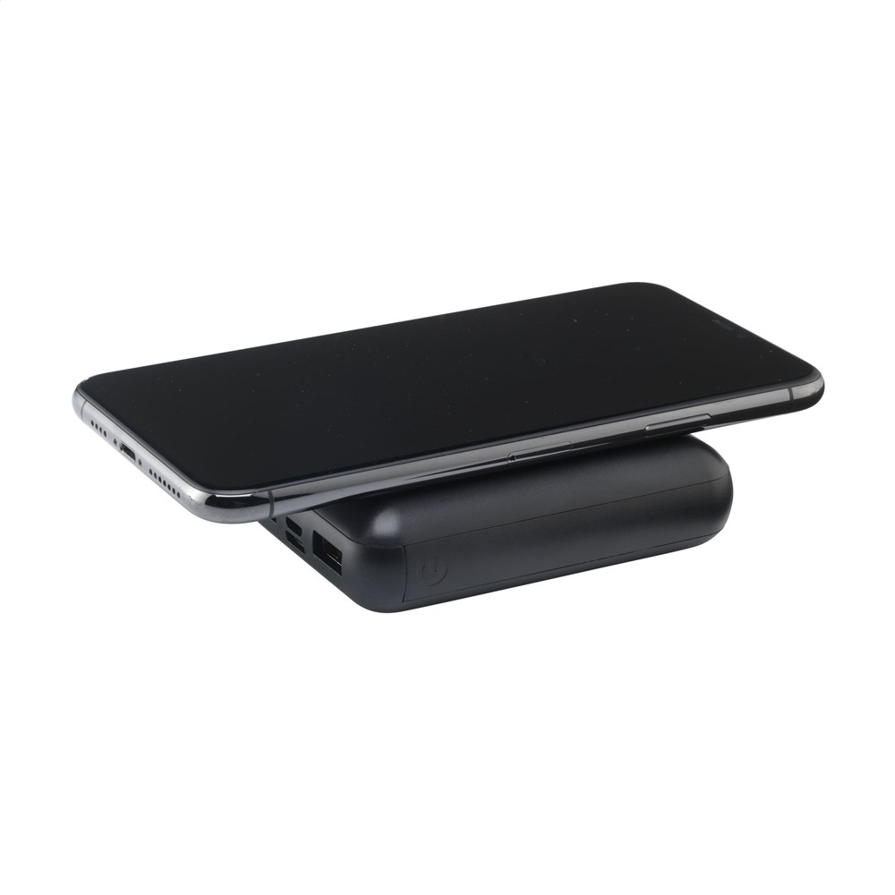 Kleine, lichte en zeer krachtige wireless charging (5W) powerbank van gerecycled ABS met...meer