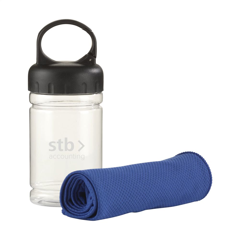 Speciale koelhanddoek van 100% polyester. Na een dompeling in koud water biedt deze handdoek verkoeling tijdens sportieve activiteiten of bij zonverbranding. Ideaal formaat (afm. 30 x 80 cm) om te dragen als nekkoeler. In transparante koker met ABS schroefdeksel met karabijnhaak.