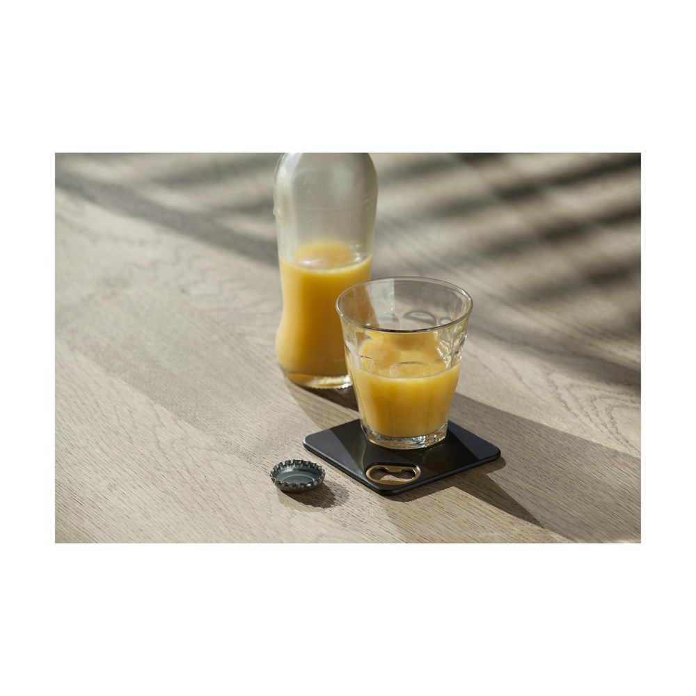 Onderzetter en metalen opener in één. Met slipvaste onderzijde. Ook te bedrukken met je eigen...meer