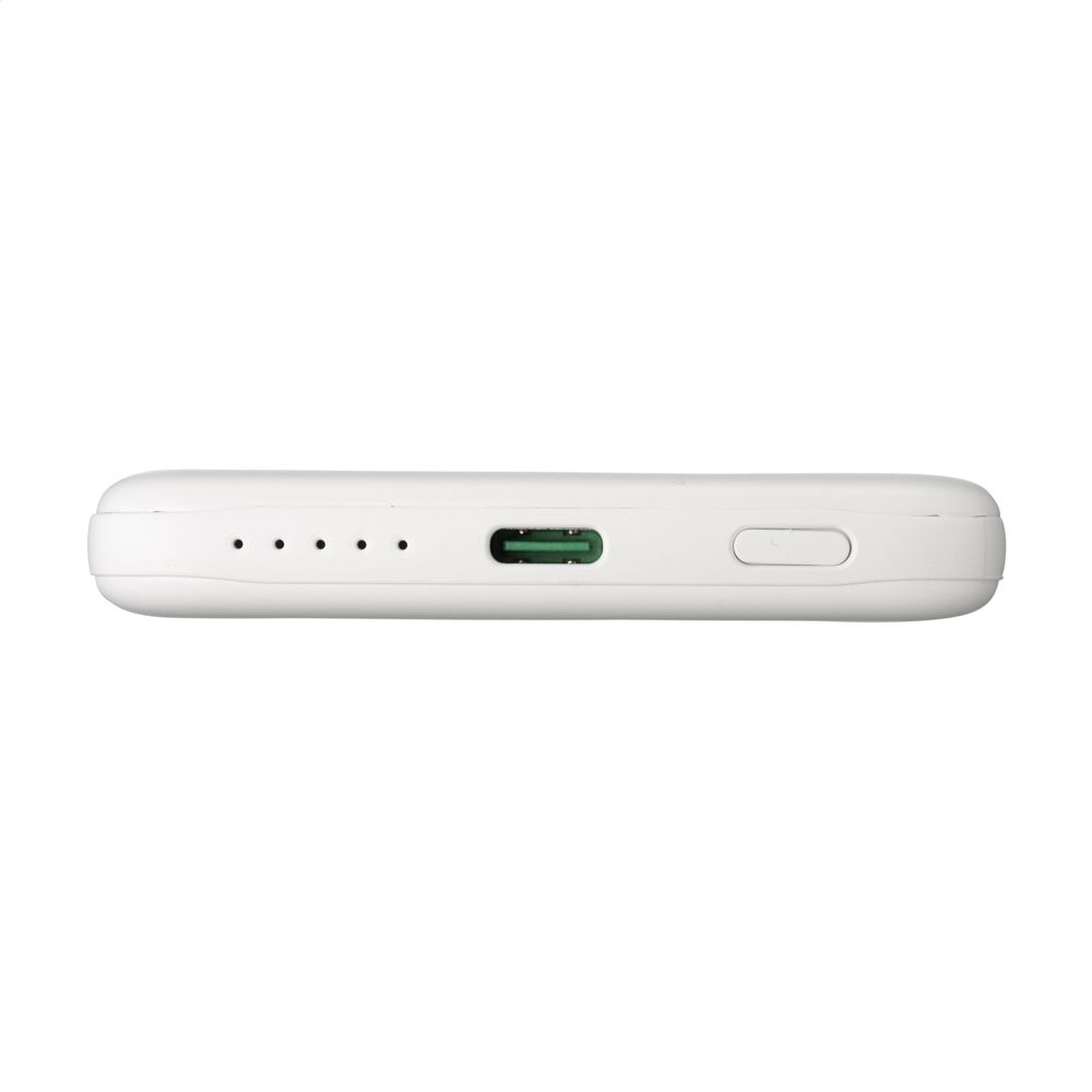 Magnetische, draadloze 15W powerbank. De behuizing is gemaakt van 100% GRS-gecertificeerd gerecycled post-consumer ABS. Met ingebouwde polymer Li-ion batterij (5.000 mAh). Klik de oplader op de achterkant van je mobiele telefoon om je apparaat op te laden. Compatibel met alle mobiele apparaten die QI draadloos laden ondersteunen. Output: 15W. Op andere telefoons kan deze worden gebruikt als een gewone oplader. USB-C Input: 5V⎓3A, 9V⎓2.22A. USB-C Output: 5V⎓3.0A 9V⎓ 2.22A 12V⎓1.67A. Inclusief USB-C/USB-C gerecyclede TPE oplaadkabel en gebruiksaanwijzing. GRS-gecertificeerd. Totaal gerecycled materiaal: 21%. Per stuk verpakt.