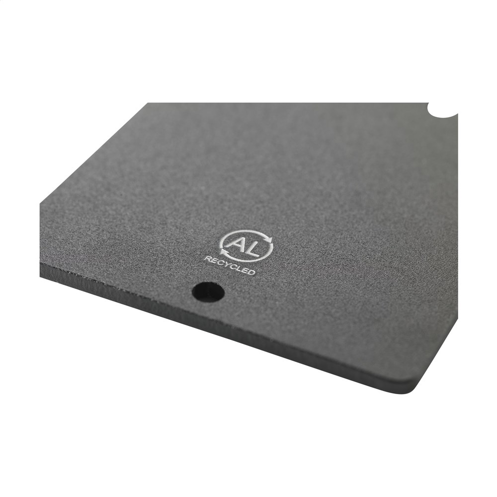 Flesopener van 100% gerecycled aluminium. De opener heeft het prettige formaat van een creditcard en is gemakkelijk aan een sleutelring te bevestigen. GRS-gecertificeerd. Aluminium kan oneindig vaak gerecycled worden terwijl de kwaliteit van het materiaal behouden blijft. Door het gebruik van gerecycled aluminium worden er minder nieuwe grondstoffen gebruikt tijdens de productie van dit product. Dit betekent minder energieverbruik en minder gebruik van water.