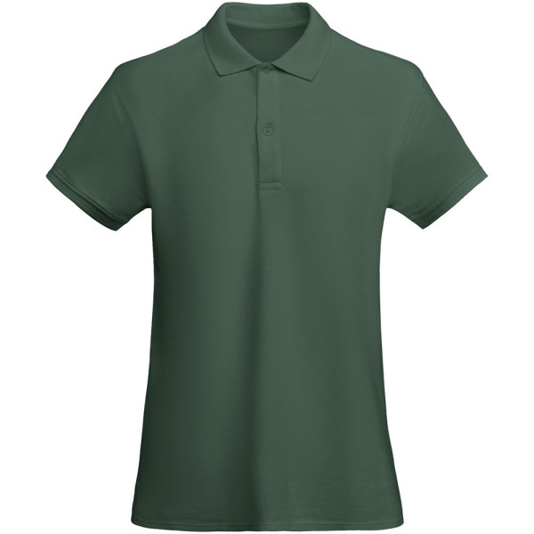 Getailleerd polo shirt met korte mouwen voor dames van biologisch katoen. 1x1 geribbelde kraag en mouwafwerking. 2-knopen boord. Verstevigde afgedekte naden in de kraag. Zijsplitten aan de zoom. Verwijderbaar label. Het model is 174 cm en draagt maat S.