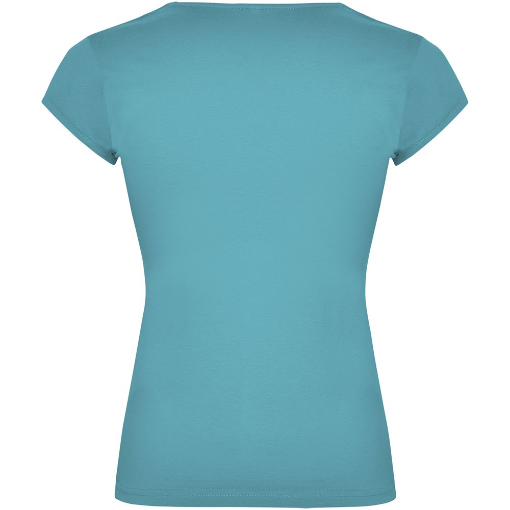 Getailleerd T-shirt met ronde hals en V-opening aan de voorkant. Afgezette halve mouw en zijnaden. Hoogwaardige stof voor een zachte en aangename touch. Verwijderbaar label. Het model is 179 cm en draagt maat S.