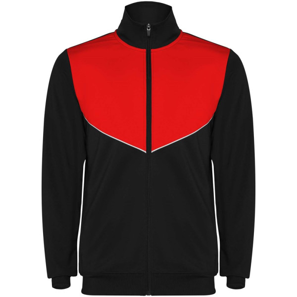 Trainingspak van lichtgewicht en elastische stof. Jack met contrasterende kleur en stiksels op de...meer