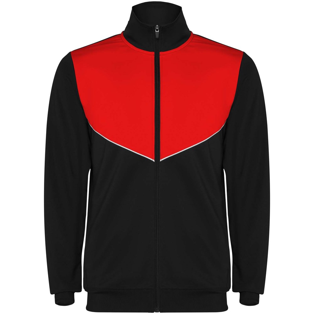 Trainingspak van lichtgewicht en elastische stof. Jack met contrasterende kleur en stiksels op de borst. Hoge kraag met contrasterende naden. Rits middenvoor. Zijzakken. 2x2 geribde manchetten en taille. Broek met elastische tailleband en trekkoord. Contrasterend zijstuk met naaiboorden. Zoom met rits.