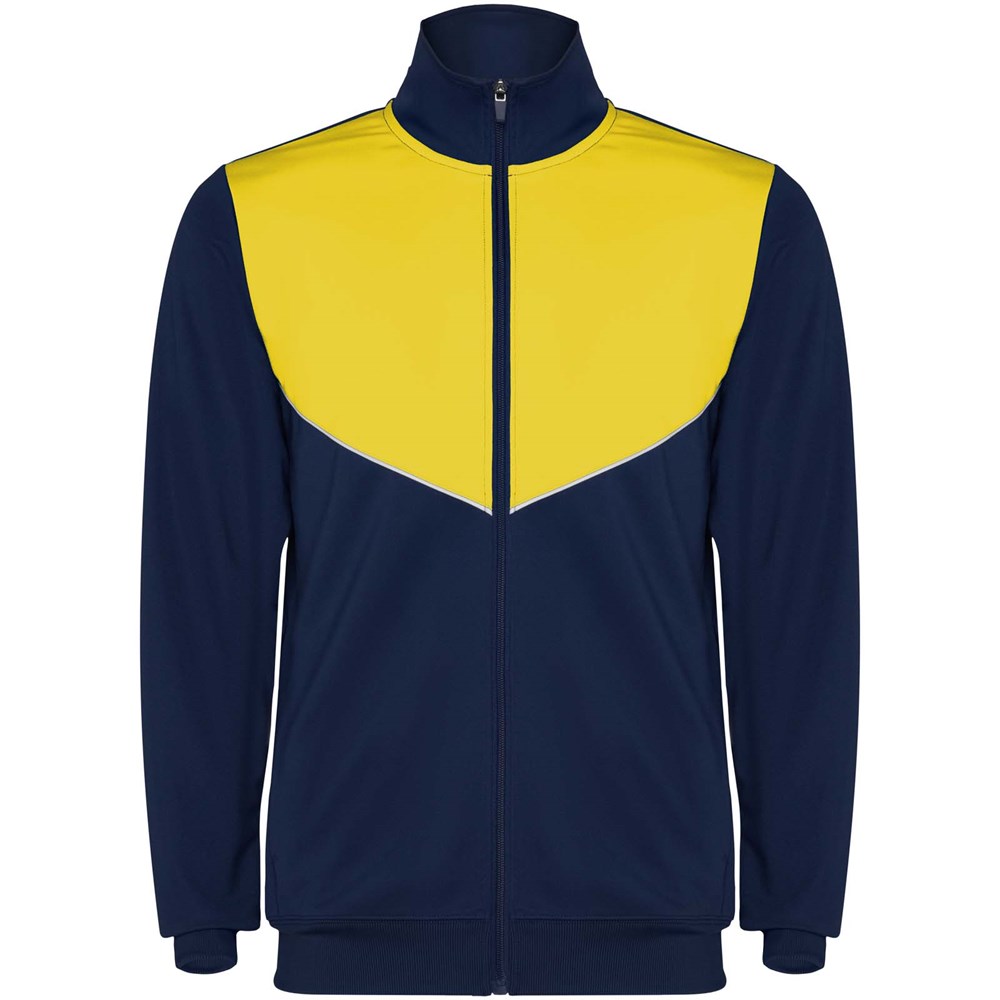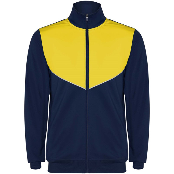 Trainingspak van lichtgewicht en elastische stof. Jack met contrasterende kleur en stiksels op de borst. Hoge kraag met contrasterende naden. Rits middenvoor. Zijzakken. 2x2 geribde manchetten en taille. Broek met elastische tailleband en trekkoord. Contrasterend zijstuk met naaiboorden. Zoom met rits.