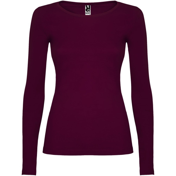 Half getailleerd T-shirt met lange mouwen en fijn afgezette hals. Geen manchetten. Zijnaden. Verwijderbaar etiket.