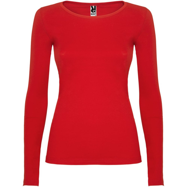Half getailleerd T-shirt met lange mouwen en fijn afgezette hals. Geen manchetten. Zijnaden. Verwijderbaar etiket.