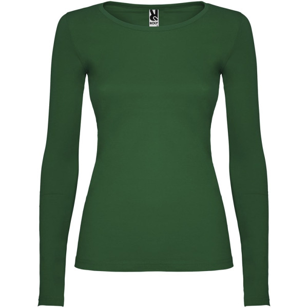 Half getailleerd T-shirt met lange mouwen en fijn afgezette hals. Geen manchetten. Zijnaden. Verwijderbaar etiket.