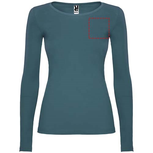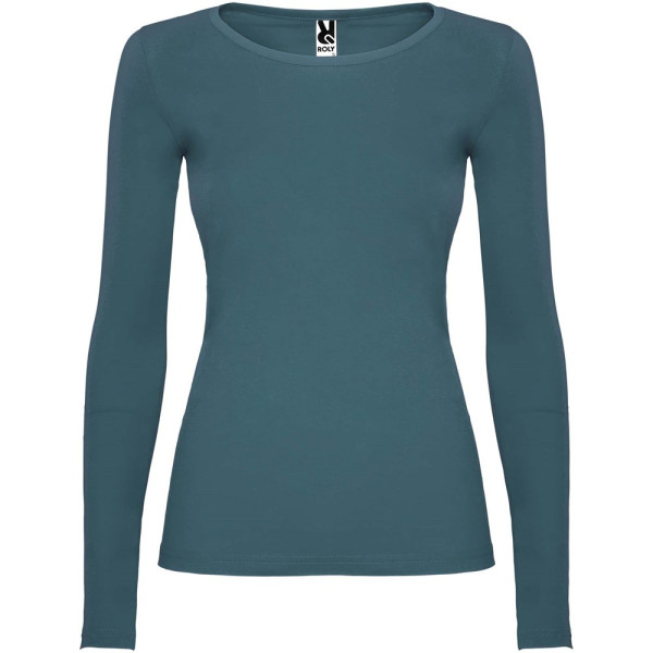 Half getailleerd T-shirt met lange mouwen en fijn afgezette hals. Geen manchetten. Zijnaden. Verwijderbaar etiket.