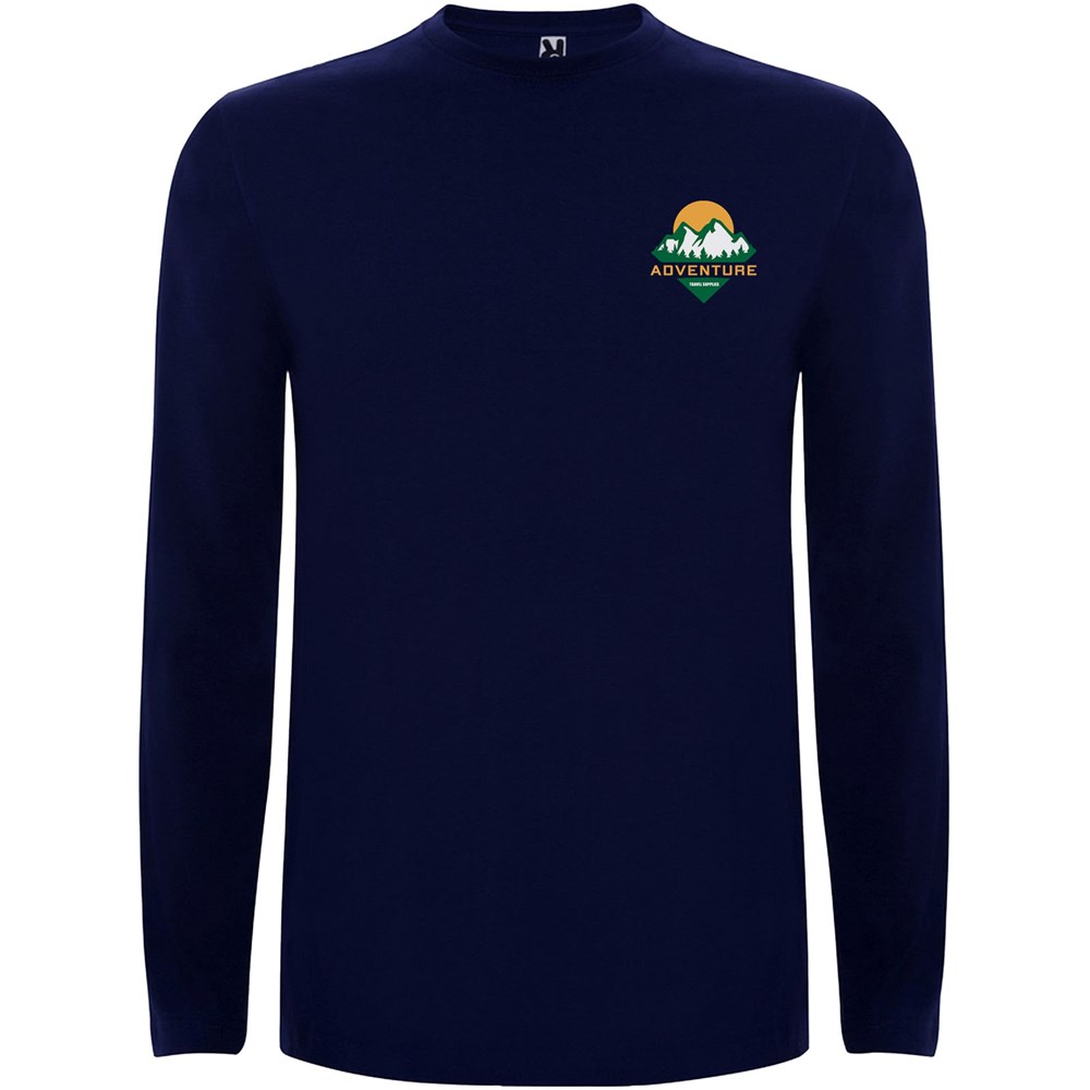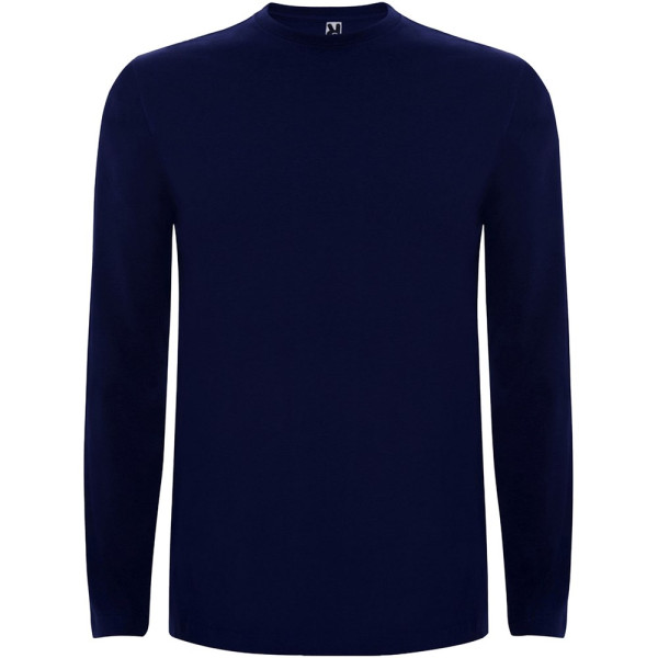 T-shirt met lange mouwen van buisvormige stof en 4-laags ronde hals. Versterkte bedekte naden in kraag en schouders. Geen manchetten. Verwijderbaar etiket. Buisvormig ontwerp in volwassen maten en zijnaden in kindermaten. Het model is 185 cm en draagt maat L.