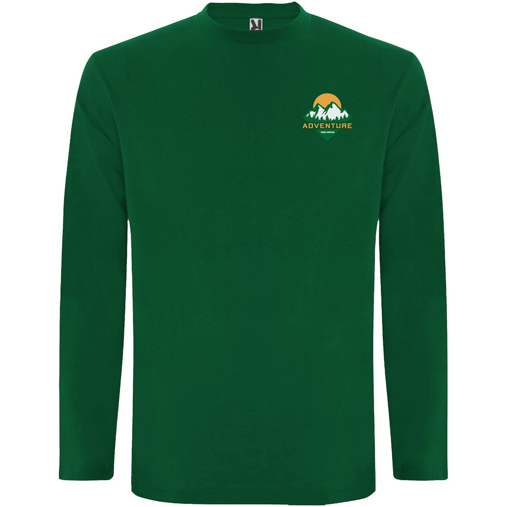 T-shirt met lange mouwen van buisvormige stof en 4-laags ronde hals. Versterkte bedekte naden in kraag en schouders. Geen manchetten. Verwijderbaar etiket. Buisvormig ontwerp in volwassen maten en zijnaden in kindermaten. Het model is 185 cm en draagt maat L.