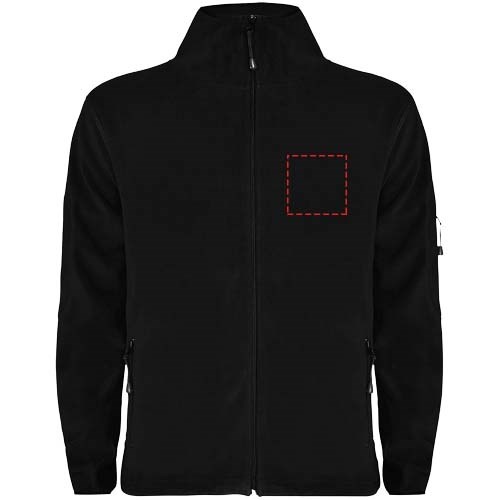 Microfleece sweatjack voor dagelijks gebruik met hoge kraag, lange mouwen en contrasterende rib. Zak met contrasterende rits op de linkermouw en contrasterende rits aan de voorkant. Naden aan de zijkanten en borst. Elleboogbeschermers van dezelfde stof.