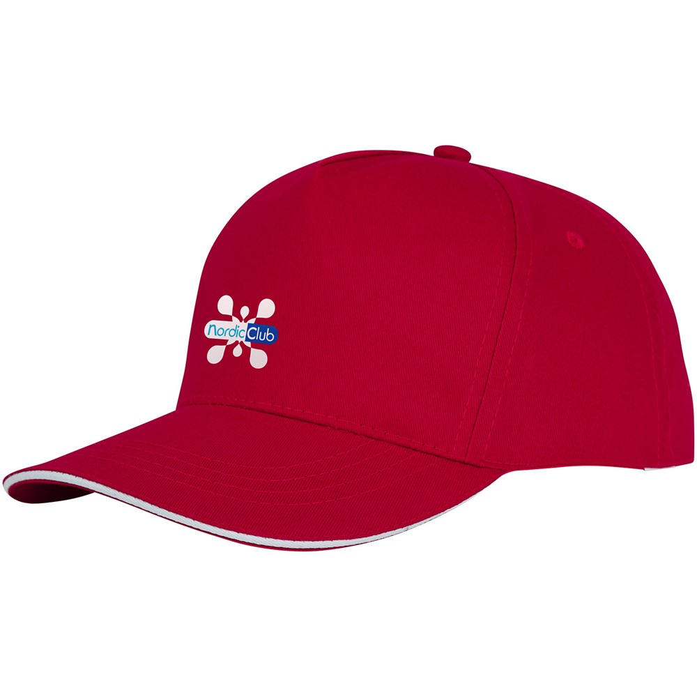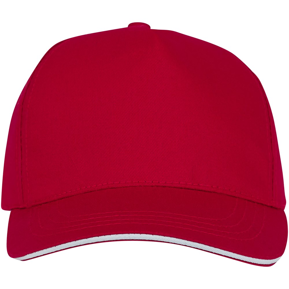 De Ceto sandwichpet met 5 panelen - stijl en functionaliteit harmonieus gecombineerd. Hij is gemaakt van 175 g/m² katoenen twill en biedt niet alleen duurzaamheid, maar voelt ook zacht en ademend aan. De pet heeft een voorgebogen vizier en een sandwichontwerp en biedt bescherming tegen de zon met een vleugje elegantie. Met een gestructureerd voorpaneel en katoenen details aan de binnenkant is deze pet zowel geraffineerd als comfortabel. Met een hoofdomtrek van 58 cm garandeert hij een pasvorm op maat voor verschillende hoofdmaten. De stoffen klittenbandsluiting kan moeiteloos worden versteld voor de perfecte pasvorm. De Ceto pet is het ideale accessoire voor elke gelegenheid, of het nu gaat om een casual uitje of een avontuur in de buitenlucht.